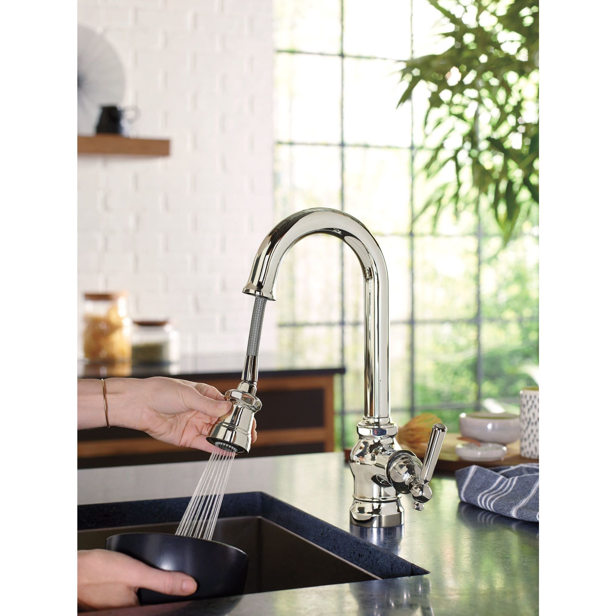 Moen Paterson Matte black one-handle pulldown single mount bar faucet